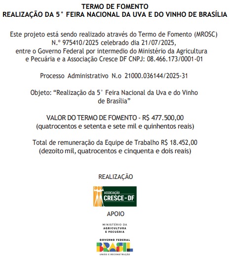 TERMO DE FOMENTO Nº975410/2025 – REALIZAÇÃO DA 5º FEIRA DA UVA E DO VINHO DE BRASÍLIA